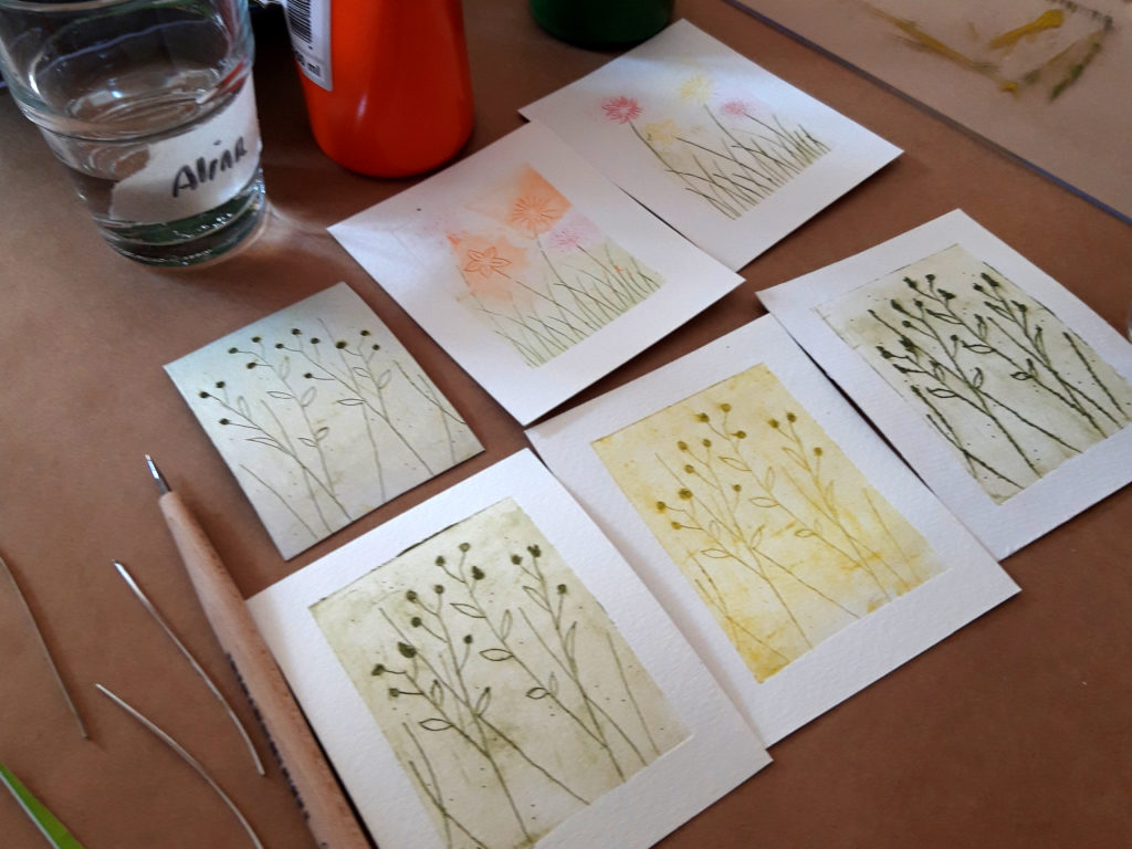 Es sind keine Vorkenntnisse nötig. Ihr bekommt die Gelegenheit, die Technik ausführlich kennenzulernen, mehrere Motive zu drucken und mit Farbauftrag und Prägungen zu experimentieren. Auch Fortgeschrittene sind herzlich willkommen, weiter mit der Technik zu experimentieren. Ich freue mich auf einen gemütlichen und kreativen Nachmittag mit euch!