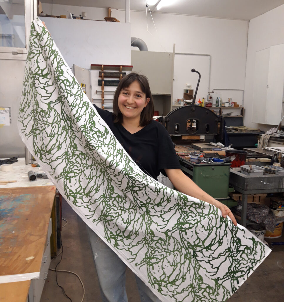Nach meinem Studium an der HfG Offenbach kam ich 2022 nach Freiburg und damit zurück in meine Heimat, den Schwarzwald. Ich arbeite unter anderem in Bereichen wie Cyanotypie, Druckgrafik, Pflanzenfarben, Material- und Textildesign. Dabei lasse ich mich von den Prozessen der Natur inspirieren, verfolge einen forschenden Ansatz und gebe Zufällen Raum. Es liegt mir besonders am Herzen, meine Begeisterung für kreative Prozesse und Experimente in Workshops mit Erwachsenen und Kindern zu teilen.